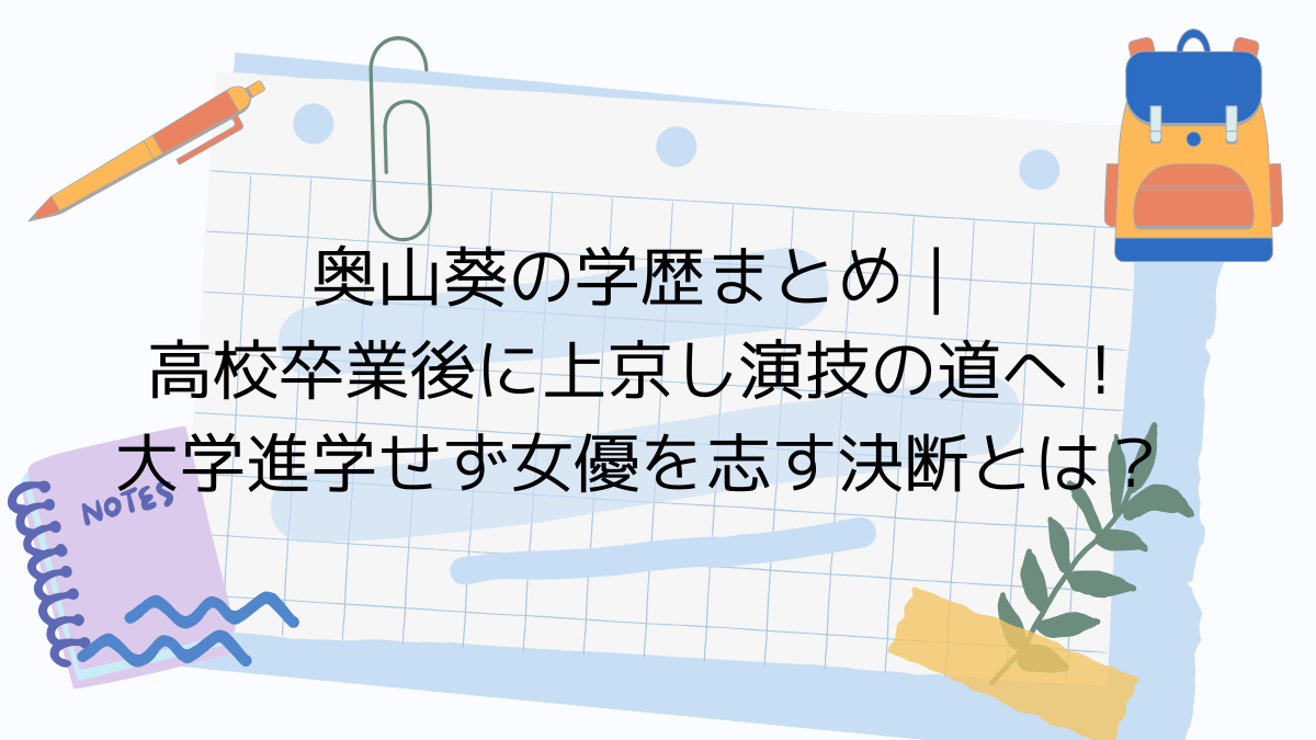 この記事では、奥山葵さんの出身高校や中学・小学校の情報、大学進学を選ばなかった理由、そして女優を志したきっかけなどを詳しくご紹介します。どんな学生生活を送り、どのようにして夢を実現していったのでしょうか?