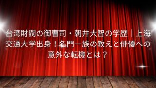俳優・朝井大智の学歴とは?台湾五大財閥の子孫である彼が名門・上海交通大学を卒業した理由、そして偶然のスカウトからバイリンガル俳優になるまでの驚きの経歴と学生時代のエピソードに迫ります。