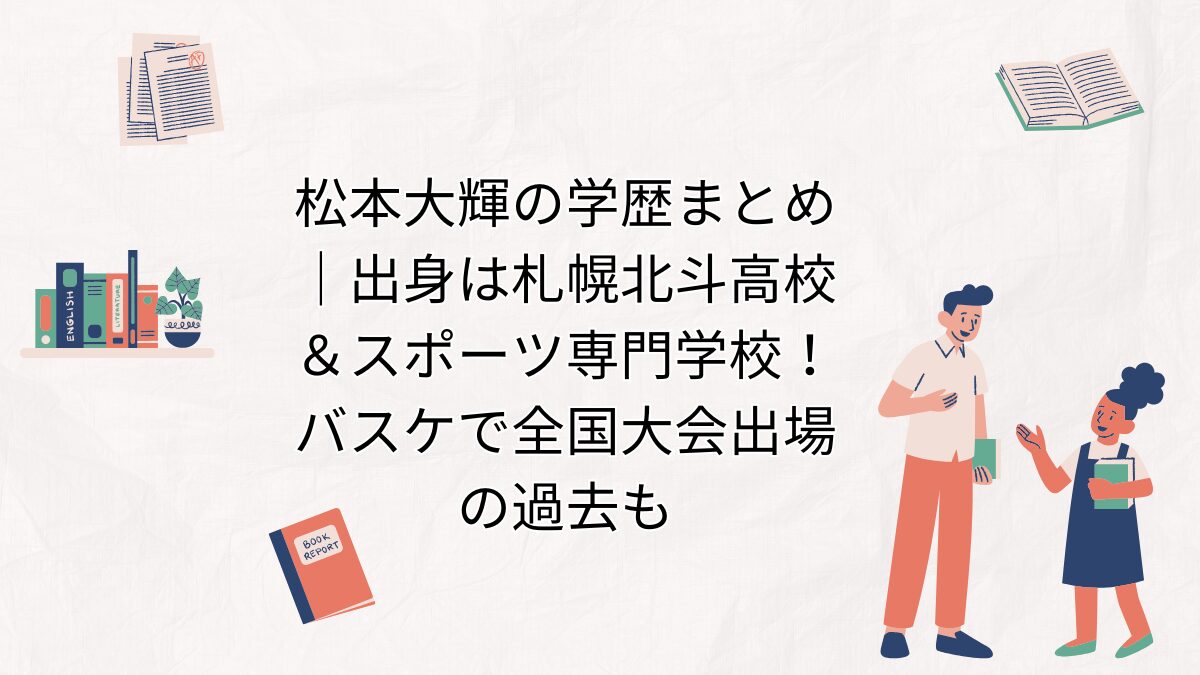 松本さんの出身高校は「札幌北斗高等学校」です。北海道札幌市にある公立高校で、進学・就職どちらにも対応したカリキュラムを提供している学校として知られています。