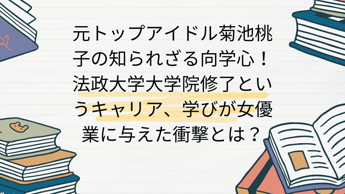 元トップアイドルとして一世を風靡した菊池桃子さん。その華やかなキャリアの裏で、学び続ける姿勢を貫き、法政大学大学院を修了した事実は意外と知られていません。本記事では、菊池桃子さんの知的好奇心あふれる学歴と、それが彼女の芸能活動や人生観に与えた影響を深掘りします。