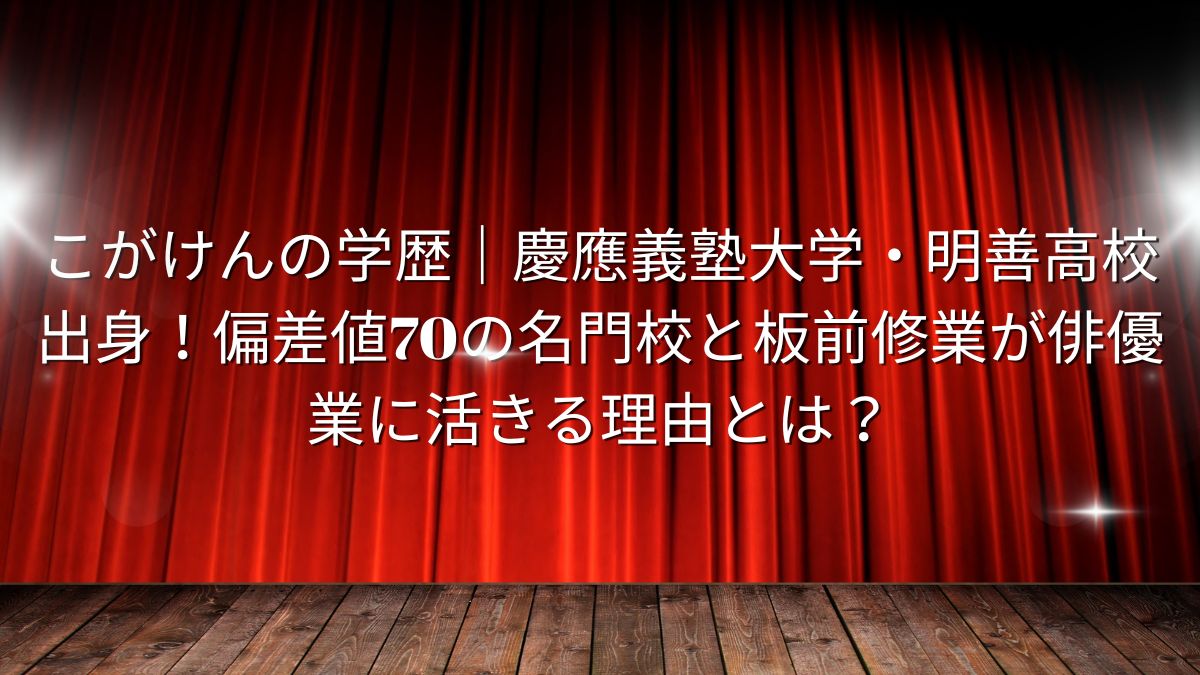 こがけんさんの高学歴は、俳優業において彼の個性となっています。