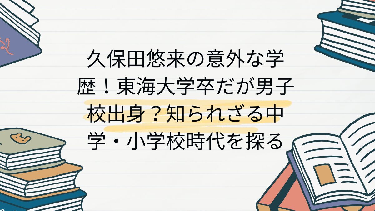 そんな久保田さんの学歴について調べてみると、東海大学を卒業されていることがわかりました。 しかし、出身高校は非公表ながらも「男子校だった」というユニークな情報や、地元・平塚での小中学校時代のエピソードも明らかになってきました。スポーツ万能で当時からモテモテだったという噂も気になりますね。
