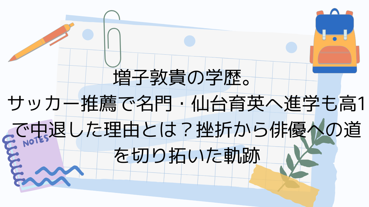 増子敦貴さんは、その多彩な表情と確かな演技力で、見る人の心を掴んで離さない魅力的な俳優です。彼の経歴を調べてみると、実はサッカーのスポーツ推薦で名門校に進学しながらも、高校中退という大きな決断をされていることが分かります。