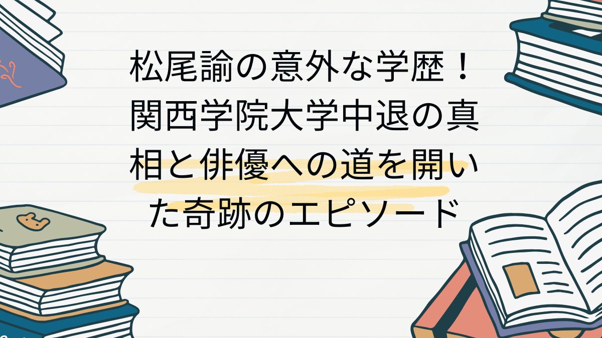 今回は、個性派俳優・松尾諭さんの学歴について、関西学院大学中退の真相から高校・中学時代のエピソード、そして俳優になるまでのユニークな道のりを詳しくご紹介しました。