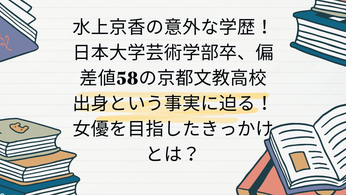 この記事では、女優・水上京香さんの学歴(大学・高校・中学)や学生時代の経歴、芸能界入りのきっかけなどを詳しくご紹介します。偏差値や当時のエピソードも交えながら、彼女の魅力に迫ります。