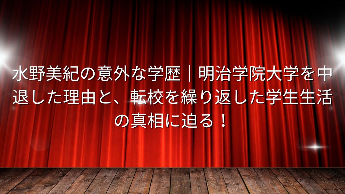 水野美紀の意外な学歴|明治学院大学を中退した理由と、転校を繰り返した学生生活の真相に迫る!