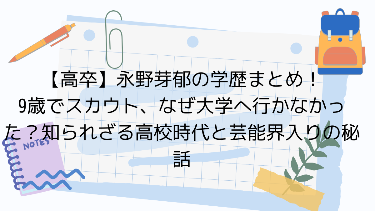永野さんは高校卒業を待たずして、すでに芸能界の第一線で活躍していました。そのため、「卒業後に芸能界入り」というよりは、学業を終えて本格的に俳優業一本にシフトした、という表現が近いでしょう。