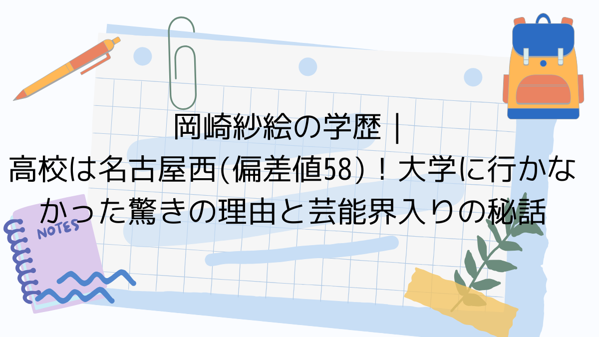 この記事では、岡崎紗絵さんの出身高校である愛知県立名古屋西高校(偏差値58)をはじめ、中学・小学校時代の情報、そして大学に進学しなかった理由や芸能界入りのきっかけなどを、インタビューでの発言やエピソードを交えながら詳しくご紹介します。彼女が歩んできた道のりや、知られざる学生時代の素顔に迫ります。