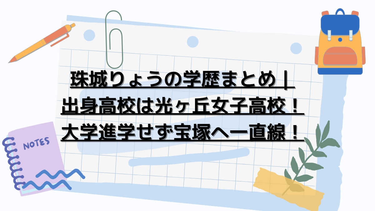 珠城りょうさんは、光ヶ丘女子高等学校を卒業後、大学には進学せず宝塚音楽学校へと進み、見事トップスターとしての地位を築きました。