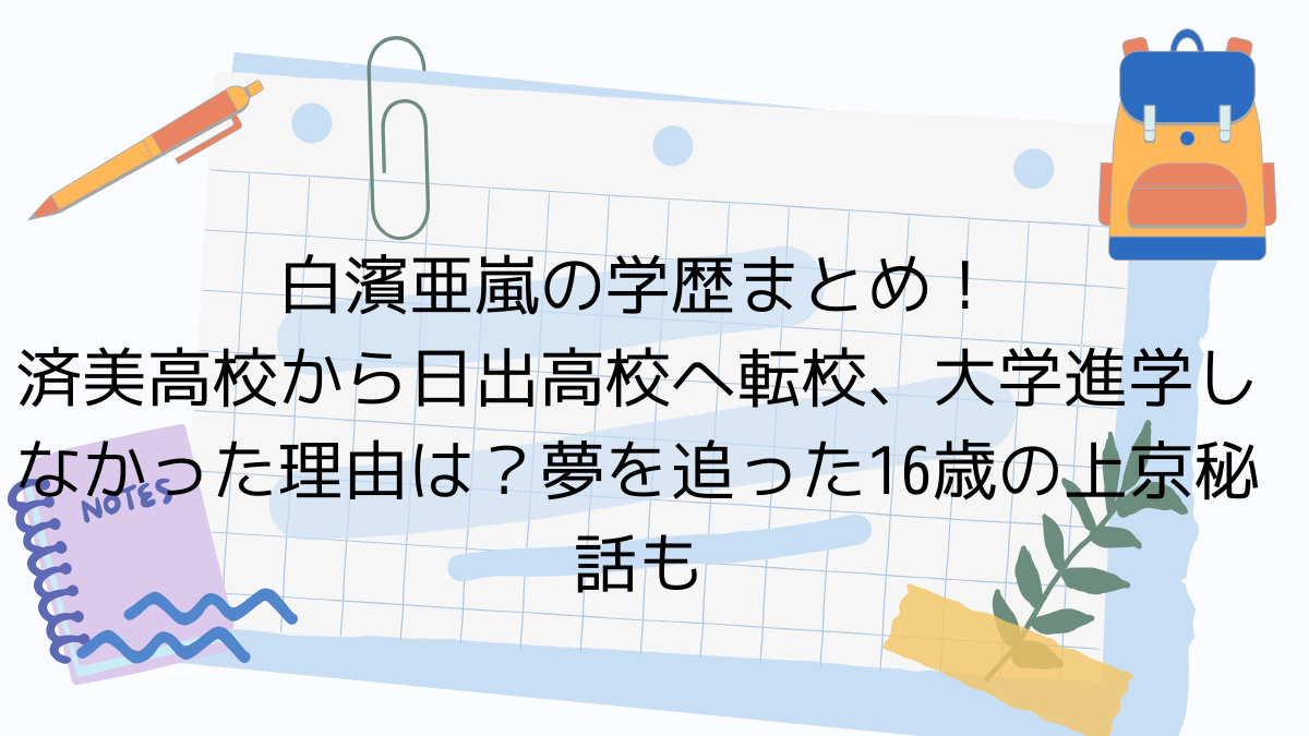 白濱亜嵐さんの小学校から高校までの道のりを振り返ると、彼の持つ行動力や夢への情熱が見えてきます。ここでは、学歴や学生時代のエピソードから彼の人物像に迫ってみましょう。