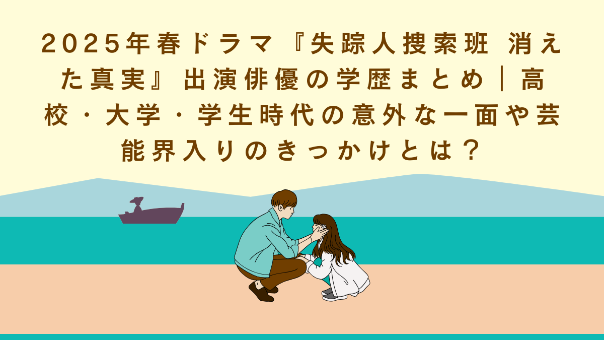 2025年4月スタートのドラマ『失踪人捜索班 消えた真実』。元刑事が個性的な仲間たちと失踪者を追うサスペンス・エンターテインメントですが、その魅力的なキャスト陣の輝きの裏には、意外な学歴や学生時代のエピソードが隠されています。