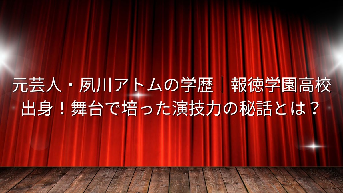 夙川アトムの学歴は俳優業にどう活かされている?礼節と勤労の校風が現場適応力に通じる可能性