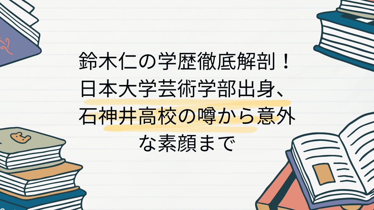 鈴木仁さんの出身高校については本人が公表していませんが、以前テレビ番組で「高校生の時に西武池袋線沿いのひばりが丘駅でよく遊んでいた」と発言されたことから、その沿線にある東京都立石神井高等学校ではないかという説が有力です。