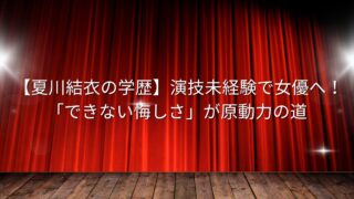 高卒・中卒の俳優 【夏川結衣の学歴】演技未経験で女優へ!「できない悔しさ」が原動力の道 夏川結衣の学歴を徹底解説!熊本のお嬢様学校、八代白百合学園高校卒業後、なぜ大学に進学せず女優の道へ?演技未経験で現場に飛び込み、「できない悔しさ」を原動力に変えてきた彼女の壮絶な女優人生の原点に迫ります。 2025.09.20 高卒・中卒の俳優