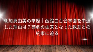 朝ドラ・大河出演者 朝加真由美の学歴|函館白百合学園を中退した理由は?芸名の由来となった親友との約束に迫る 朝加真由美の学歴を追跡!名門・函館白百合学園を中退した驚きの理由とは?芸名の「真由美」に込められた中学時代の親友3人との感動秘話や、劇団青年座で培われた演技力の原点に迫ります。 2025.09.22 朝ドラ・大河出演者高卒・中卒の俳優