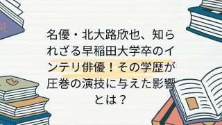 朝ドラ・大河出演者 名優・北大路欣也、知られざる早稲田大学卒のインテリ俳優!その学歴が圧巻の演技に与えた影響とは? 名優・北大路欣也さんの早稲田大学卒という知的な一面と、その学歴が俳優人生に与えた影響を辿りました。彼の演技の深淵に触れる鍵がここに。 2025.05.16 出身大学別大学卒早稲田大学朝ドラ・大河出演者