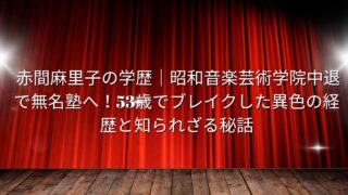 朝ドラ・大河出演者 赤間麻里子の学歴|昭和音楽芸術学院中退で無名塾へ!53歳でブレイクした異色の経歴と知られざる秘話 赤間麻里子の学歴を徹底調査!昭和音楽芸術学院を中退し「演劇界の東大」無名塾で10年修行した異色の経歴が、53歳での大ブレイクにどう繋がったのか?木村多江との意外な関係や海外でのダンス修行時代にも迫ります。 2025.09.22 朝ドラ・大河出演者