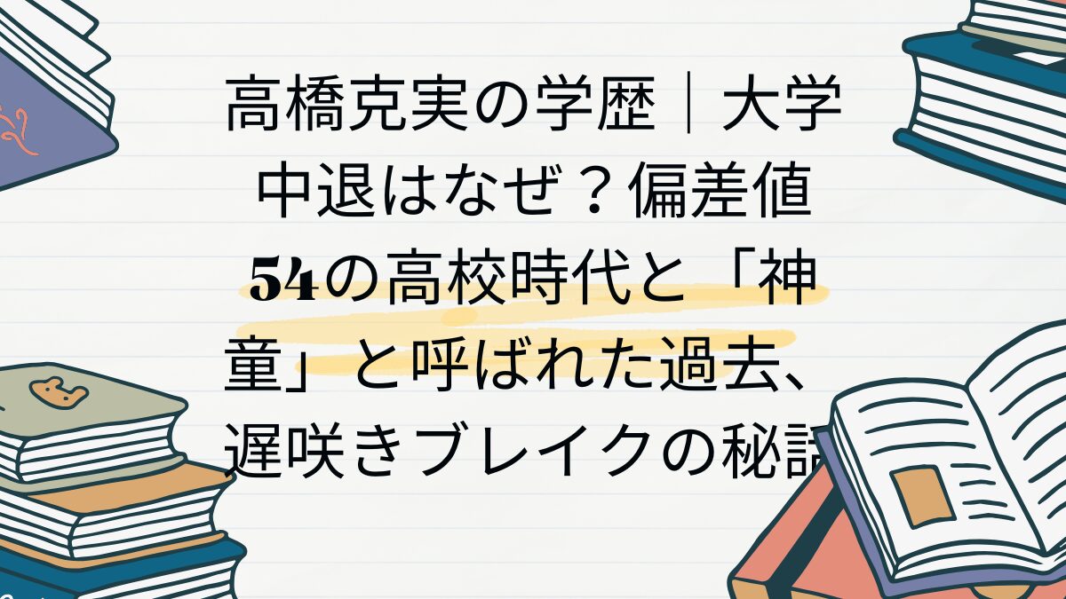 小学校時代の「神童」ぶりから大学中退、そして長い下積みへ。高橋さんの学歴をたどると、波乱万丈な道のりが見えてきます。